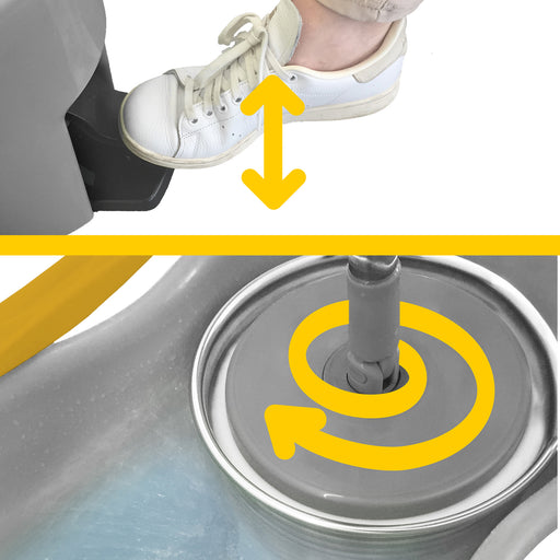 Sistema lavapavimenti completo di secchio con centrifuga a pedale, strizzatore in acciaio inox, manico e fiocco microfibra sfilabile e lavabile. S...