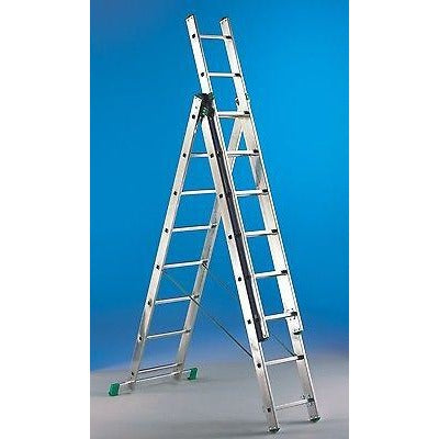 U3 in tre tronchi trasformabile sia in scala da appoggio che doppia. Dotata di stabilizzatore di base e cinghie antiapertura. Nella posizione doppi...